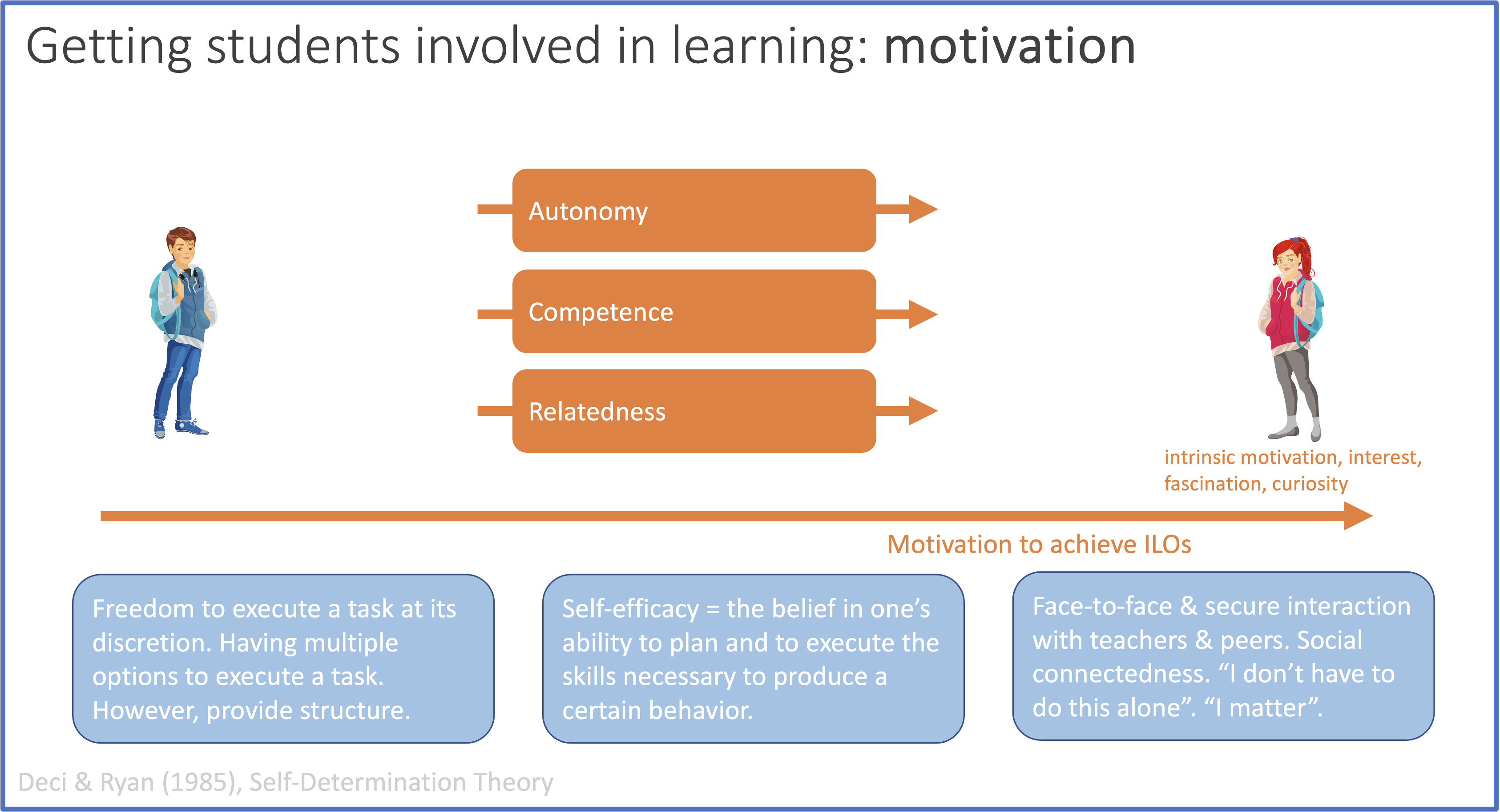 My teaching philosophy is strongly linked to theories of motivation, specifically self-determination theory. I stimulate active engagement of students in the process of teaching and learning. This includes creating a team feeling where everyone is involved in developing ideas and finding solutions, everyone knows everyone, and everyone feels at home, safe, seen and valued. I consider teaching only meaningful if learning take place. Therefore, I constantly probe students to assess whether indeed they are learning. For elements of my teaching, see this teacher story article.
