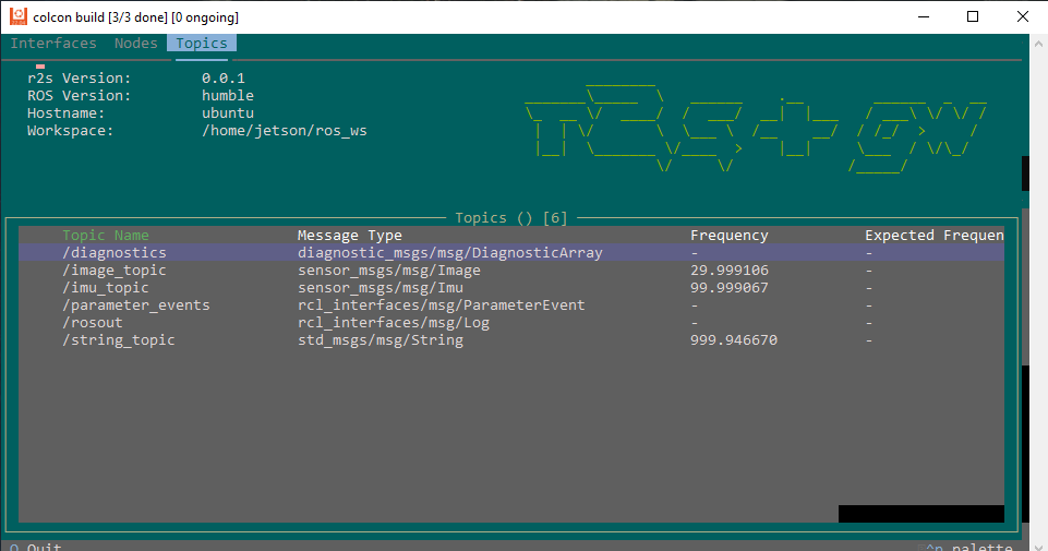 Running ros2 launch ugv_bringup bringup_imu_origin.launch.py started 6 nodes. Tried os2 run rqt_graph rqt_graph but no node or topic shoed up (although visible with os2 node list