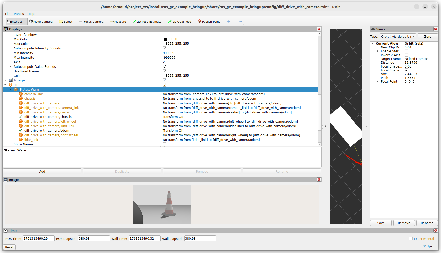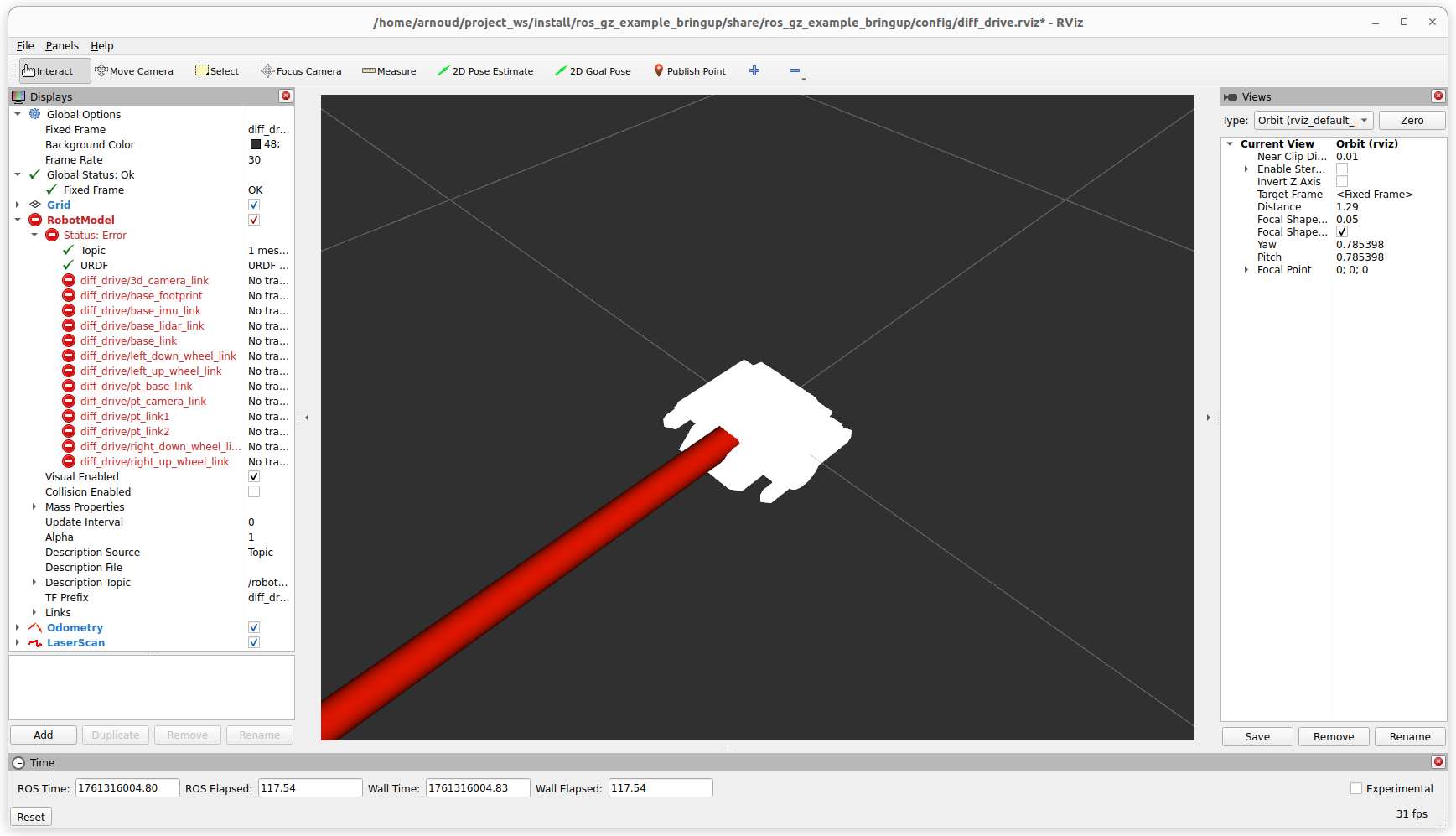 Yet, the /odom is visible from rviz, but when adding a panel it gives: Message Filter dropping message: frame 'odom' at time 1762338021.593 for reason 'discarding message because the queue is full'.