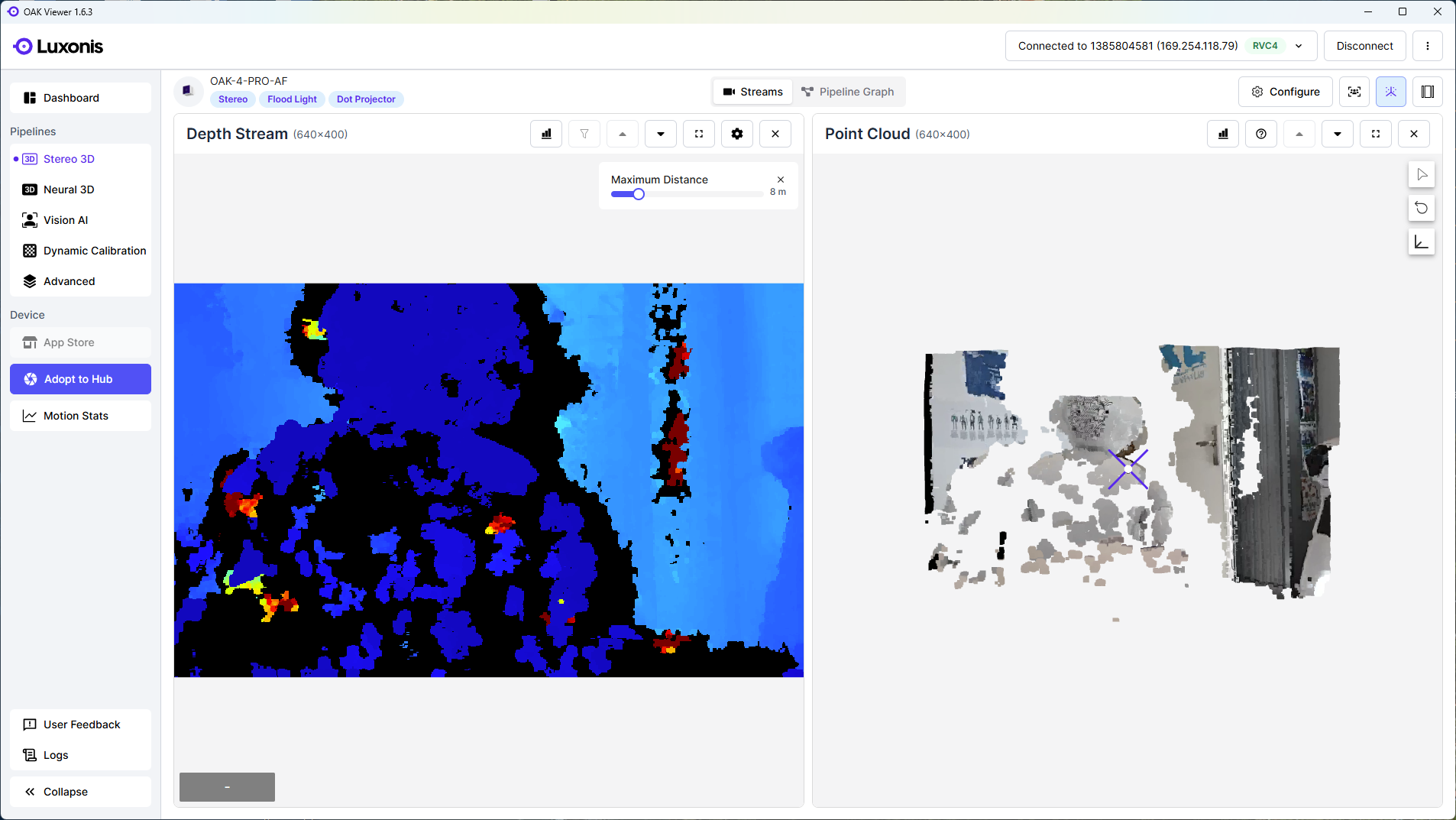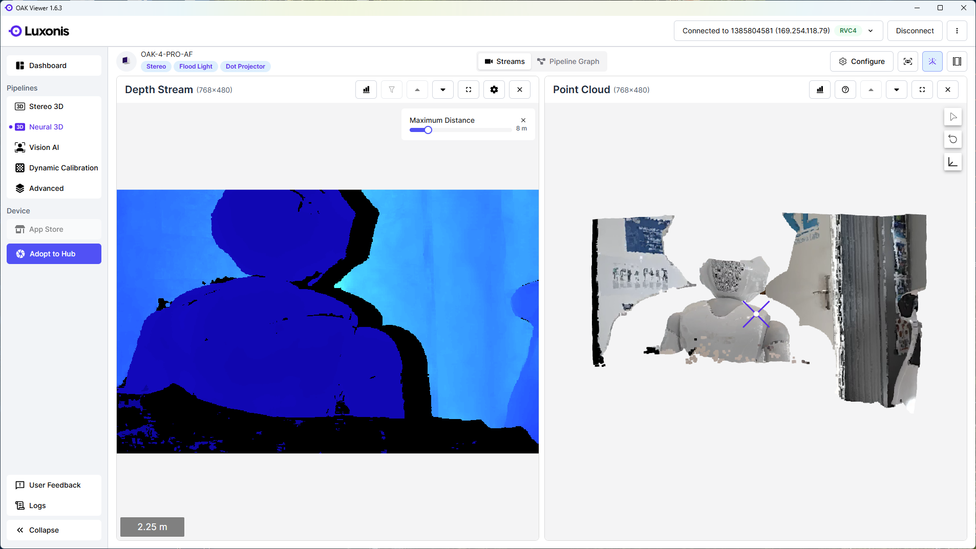 - The Neural 3D gives a less noisy depth compared to the Stereo 3D pipeline: